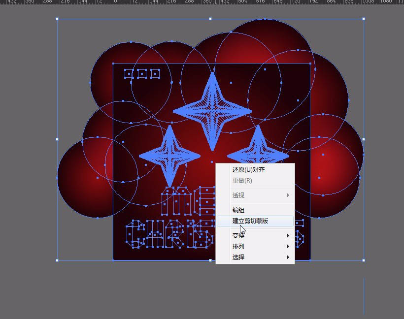 13.绘制一个矩形和页面同等大小。选中矩形和底下的图案。右键点击建立剪切蒙版。好了。绘制完成。效果如图