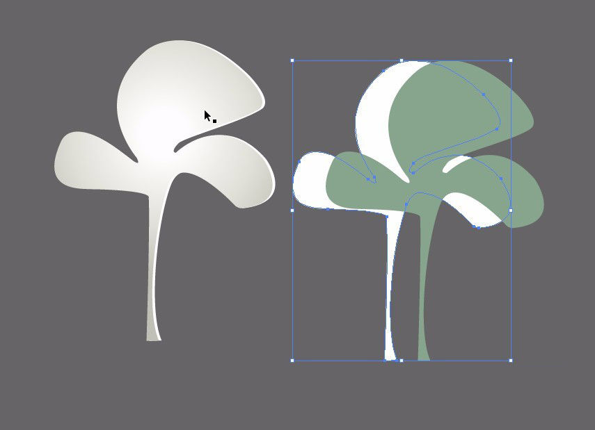 2.用钢笔工具绘制一个如图形状。填充白色描边无。按ctrl+c,ctrl+F复制一层在上面。按左方向键向左移动一些。填充渐变色①#fdfdfd②#dfe0d7③#c0c1b6;类型:径向。