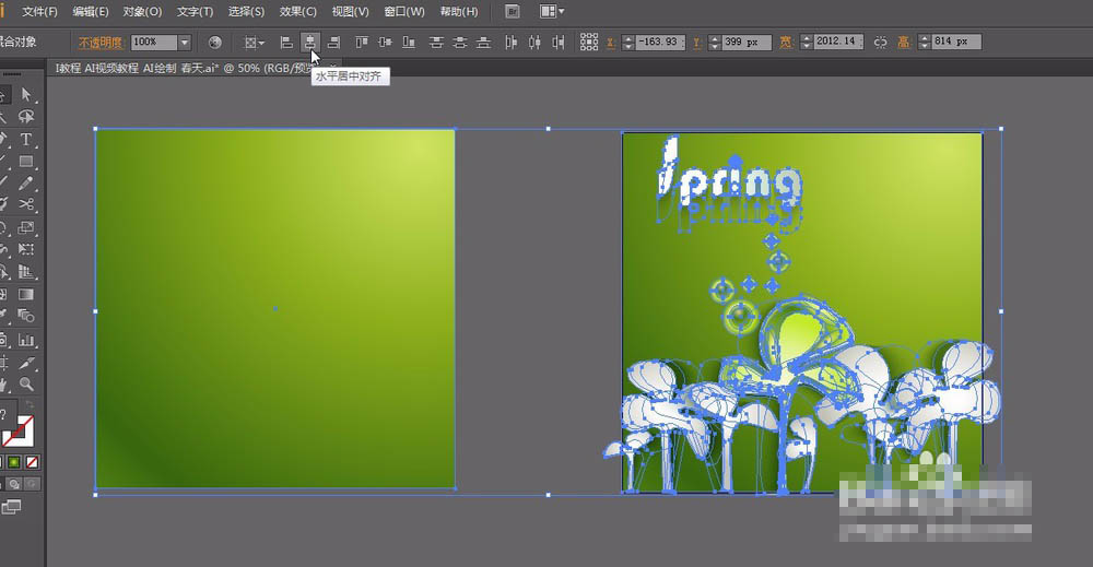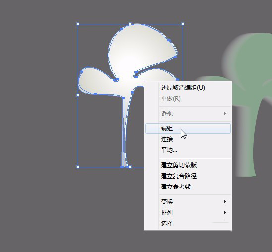 4.将这两层点右键编组。放置在页面中。将绿色那层放在他的上面偏左边移动一些。按ctrl+【后移一层。框选这几个对象。点右键编组。一个就做完了。