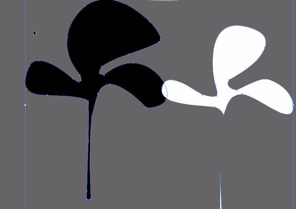 6.用钢笔工具绘制一个如图形状。绘制两层。一层黑色的。一层白色。黑色的复制层放在旁边。如图。对齐之后,按ctrl+SHIFT+F9 打开路径查找器,选择差集。填充径向渐变色。①#ffffff②#e5f390③#c3e52d;