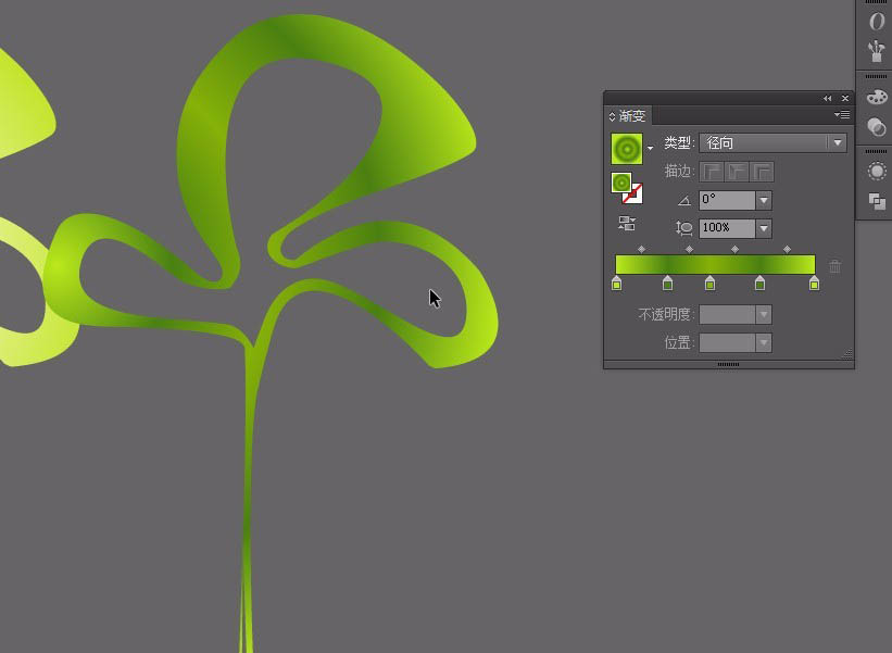 1.新建一个页面800x800px,颜色模式RGB.绘制一个矩形,大小800x800,填充渐变色①#cfe462②#8eb01b③#37660c④#5a8c13;类型:径向;按G,调整渐变滑块如图。绘制好后。按ctrl+2锁定对象。