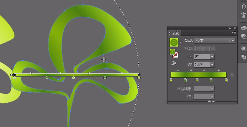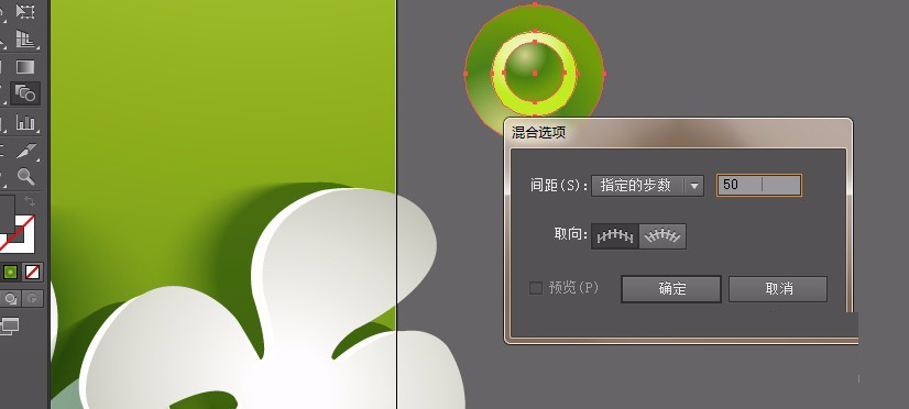 ①#bae91a②#498111③#86b107④#4a800f⑤#bae91a;按G调整渐变条的位置。然后对齐两个对象。双击混合工具,间距:指定的步数:50点击确定。选中需要做混合的对象。按ctrl+alt+b混合。效果如图。放置在页面上。