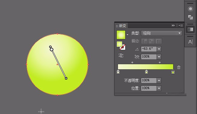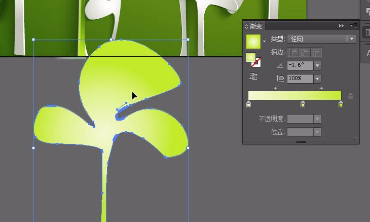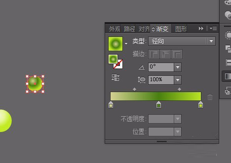8.将旁边那个复制的对象填充渐变色。径向渐变值①#f5f8d4②#def289③#c3ea2a;按G调整渐变位置。然后放置在页面上。按ctlr+【向后一层。效果如图。