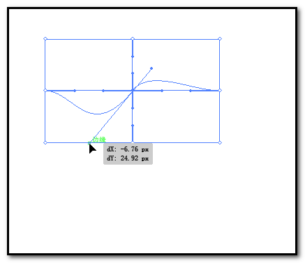 5、点住手柄,拖到矩形下边线位置,鼠标再点手柄另一端,拖到矩形上边线。