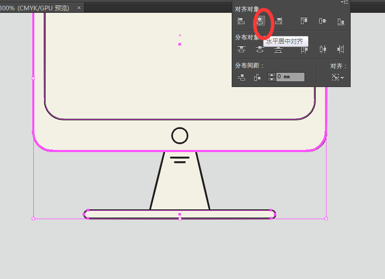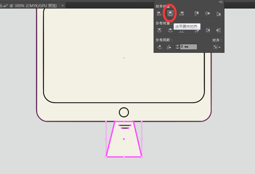 2、选择【圆角矩形工具】,绘制一个圆角矩形,描边为1pt,添加描边颜色为:#211e1f,填充色为:#f5f3e6;选中这两个圆角矩形,找到【对齐】,选择【水平居中对齐】,如图: