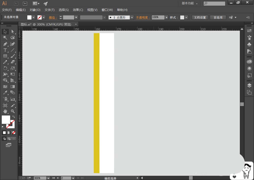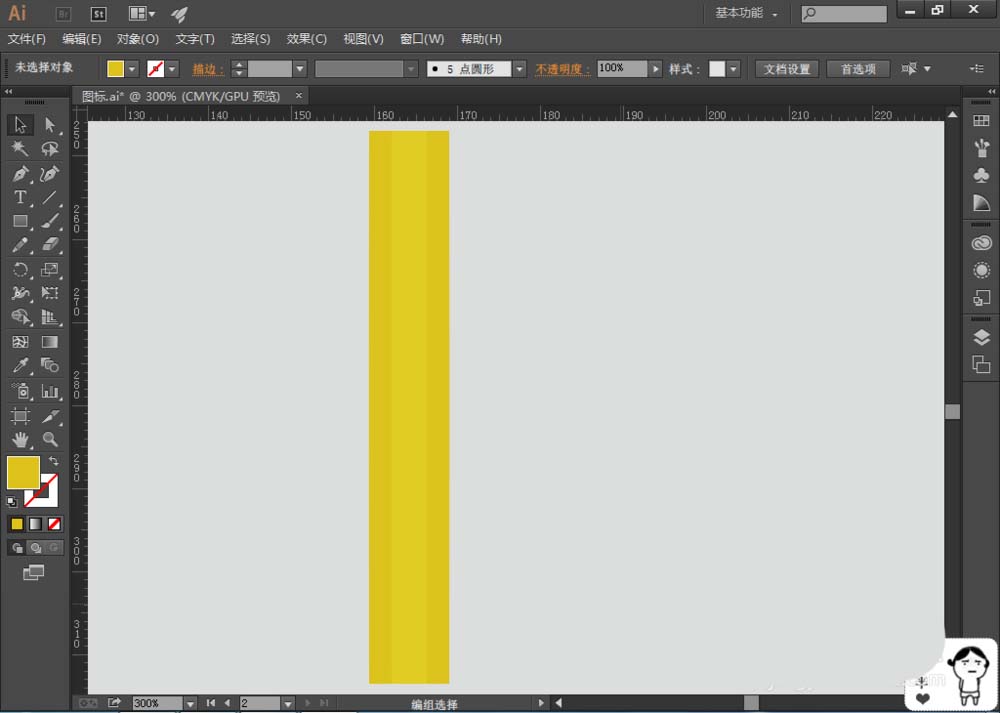 1、打开AI软件,新建文档,选择【矩形工具】,绘制三个个矩形,添加填充色分别为#dcc21b、#e0cc21;中间的矩形稍微大一些,颜色浅一些(#e0cc21),得到铅笔主体部分,如图: