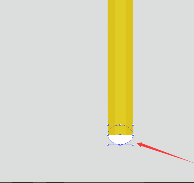 2、使用【椭圆工具】,绘制一个椭圆,添加填充色为#ead74b,将该椭圆放在铅笔主体的下面,且放在最底层,将椭圆的一半隐藏起来,如图: