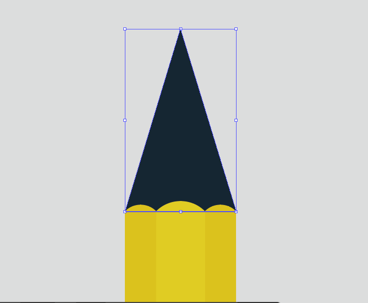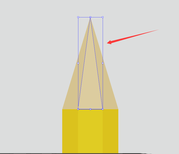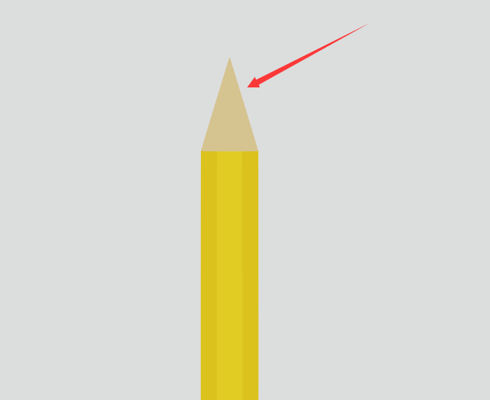 3、使用【多边形工具】,绘制一个三角形;然后使用【选择工具】,调整三角形的锚点到合适的形状,添加填充色为浅棕色(#dac792),放在铅笔主体的最底层。