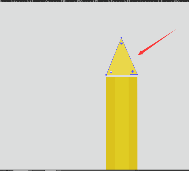 4、使用【多边形工具】,绘制一个三角形,添加填充色为#e0cfa2;然后使用【选择工具】,整三角形的锚点到合适的形状,该三角形的底边宽与铅笔主体中间线浅色的矩形宽度大小相等,具体如图: