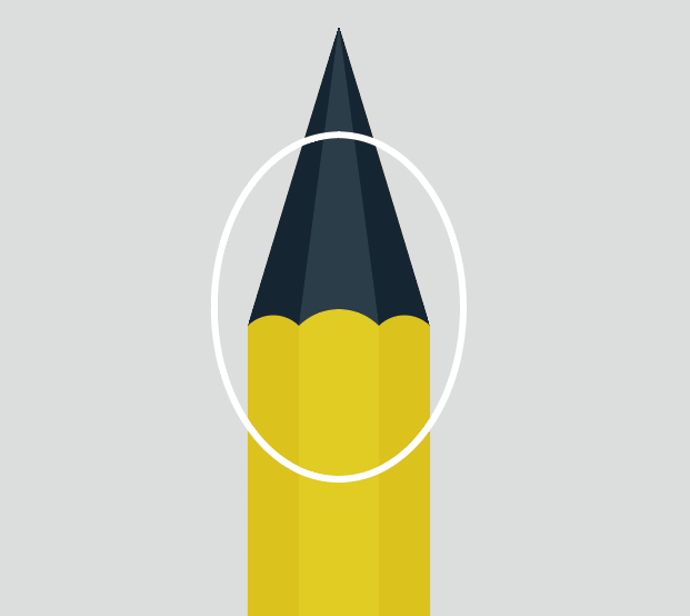 8、使用【椭圆工具】,绘制一个椭圆,让该椭圆与深灰色三角形相重叠,深灰色三角形留出约四分之一的部分作为铅笔尖,原位复制一个该椭圆,放在这里选不管,如图: