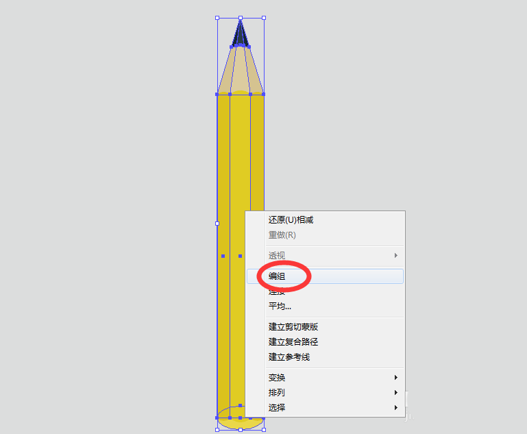 11、最后一步,选中所有图形,单击鼠标右键,选择【编组】,将组成铅笔的图形进行编组。彩色的图标就绘制完成啦!