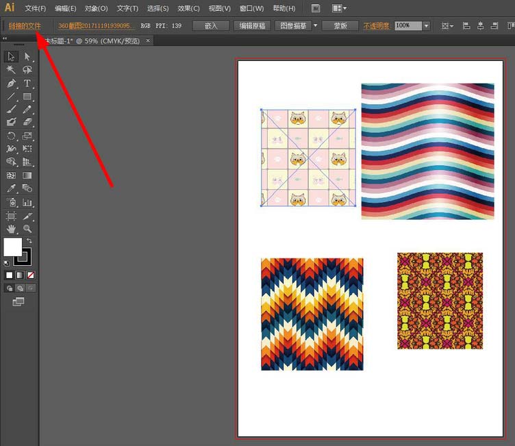 5、任意点击一张图片,上方菜单栏会出现“链接的文件”如下图所示
