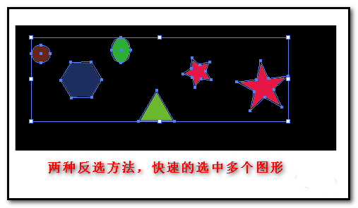 5、这时,画板上,除了黑色矩形外,其他所有图形都一次性的选中了。