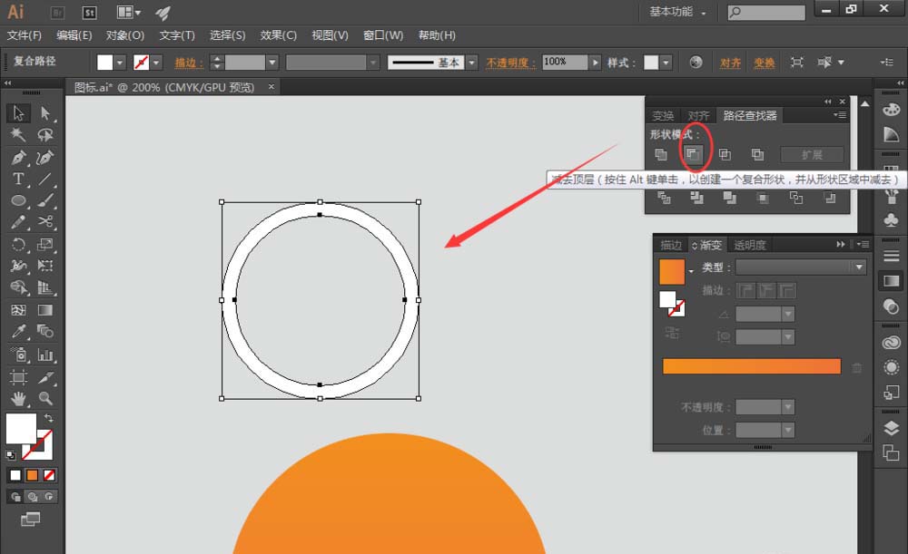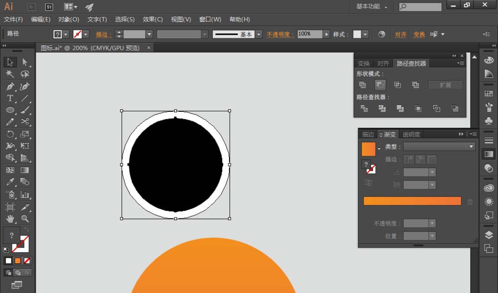 5、选择深橘色圆,按【ctrl+[ 】键,将深橘色圆置于圆环的底层;