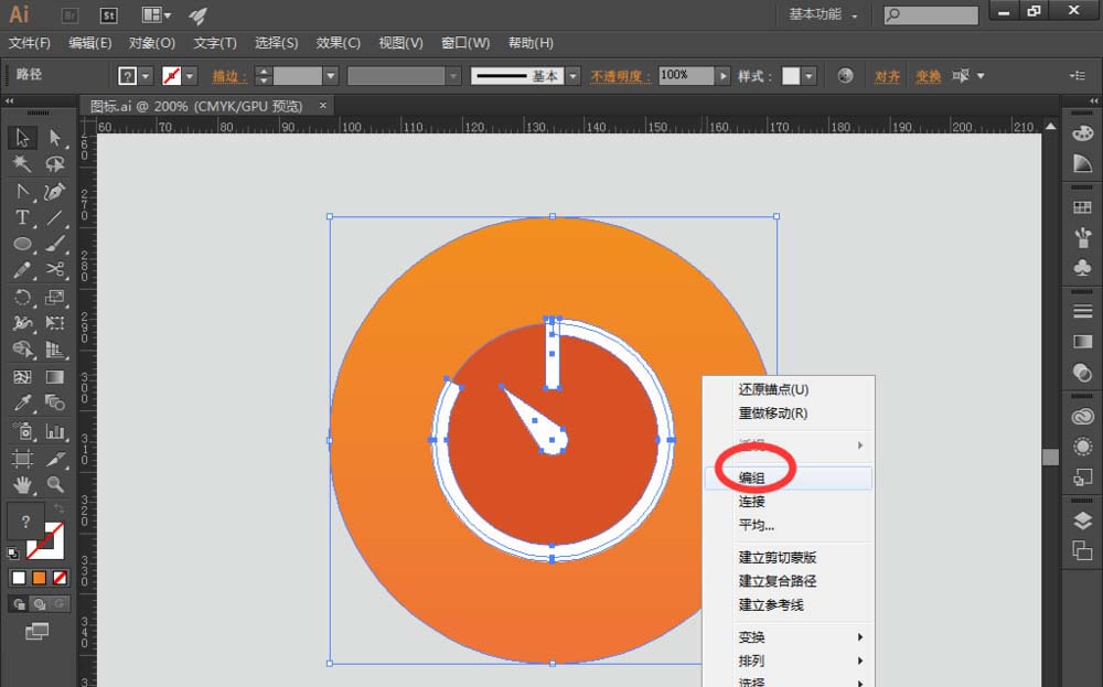 11、最后一步,选中所有图标,进行编组。秒表图标就绘制完成啦!