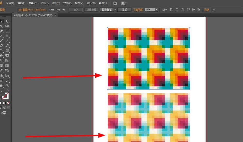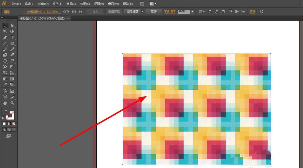 1、首先将一张图片拉入AI画板中,如下图所示