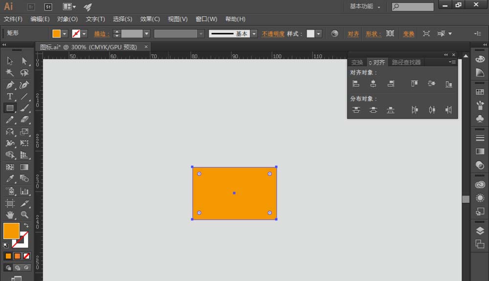 1、打开AI软件,新建文档,选择【矩形工具】,绘制一个矩形作为咖啡杯的“身体”,如图: