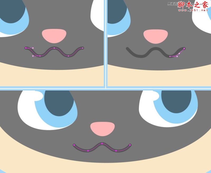 对象>扩展外观以应用效果。现在我们可以使用直接选择工具(A)编辑线的末端。向下旋转锚柄,使嘴角变圆。