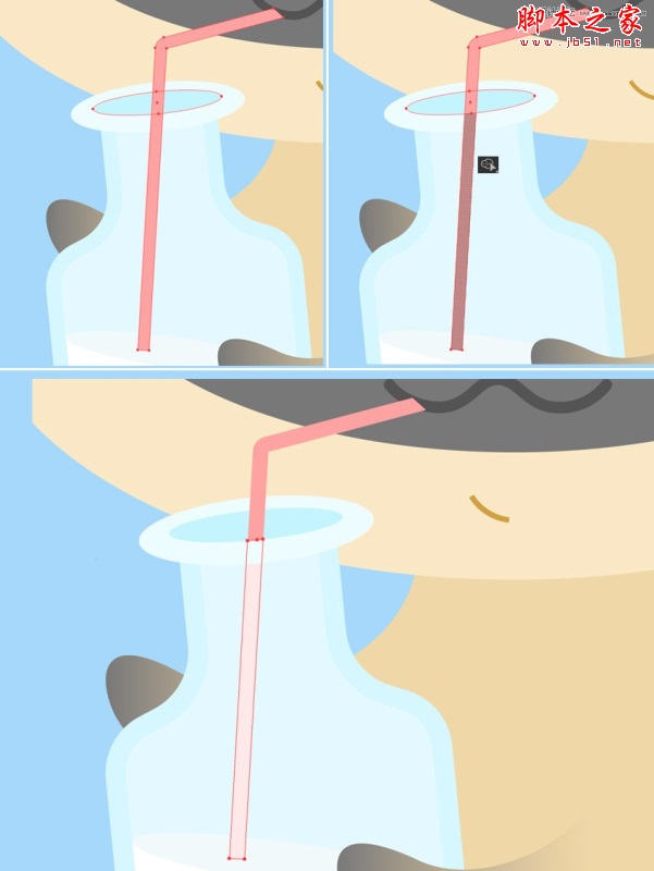 这就是现在看起来的样子。不要忘记把嘴巴形状放置到前面(Shift-Control-]),覆盖吸管的尖端。