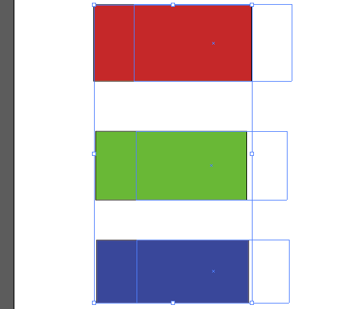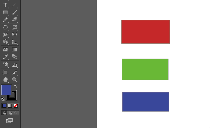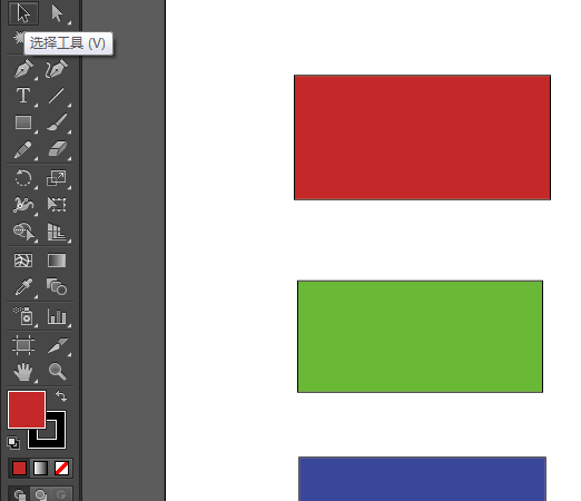 3、然后我们在画板上画三个矩形,并把第二个和第三个矩形的颜色换成其他颜色,如图所示;