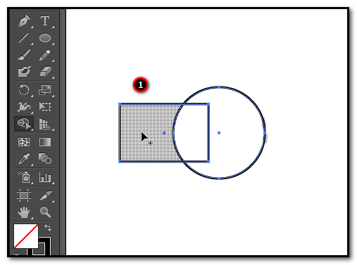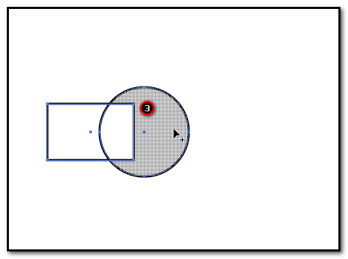 4、这时,鼠标就变成一个黑三角带着一个+字的图标。鼠标放拖过矩形和圆形上,这时,我们可以看到,矩形和圆形相交,形成了三个形状。形状生成器工具鼠标放在其中一个形状上,形状呈灰色网状。