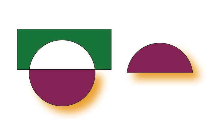 6、最后我们点击"直接选择工具",把分割的图形拿出来,分割的新图形保持原来的投影和描边属性,如图所示