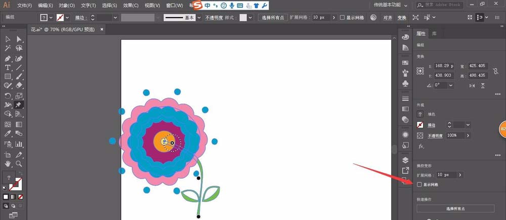 4、扩展网格差不多调整到10左右就可以了,就是要调到网格连接起来