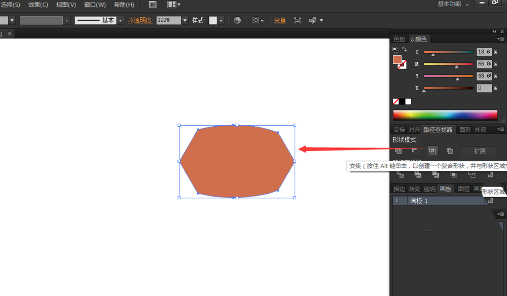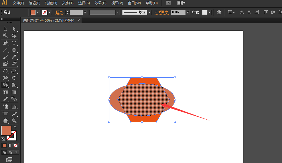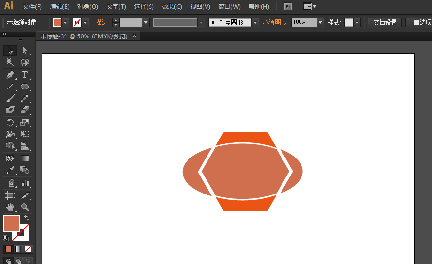 1、为了演示方便,此处以简单的组合图形用以展示。新建一个AI页面,利用椭圆形工具和多边形工具,作出一个椭圆形和正六边形相交的图形。