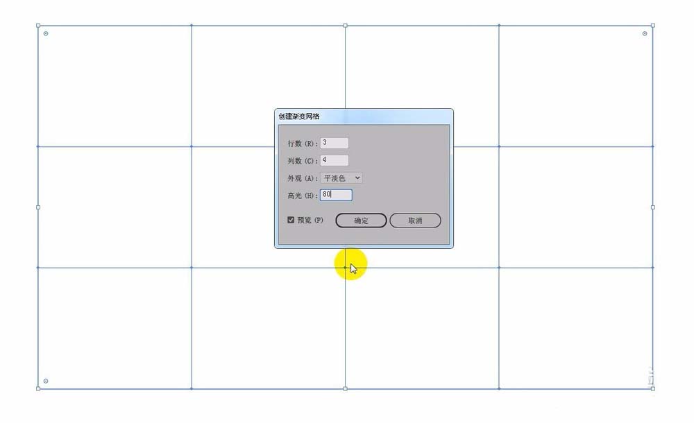 2、做渐变的关键步骤来了,菜单栏,对象-创建渐变网格,如图显示,根据自己的情况调整数值,你可以都试一下
