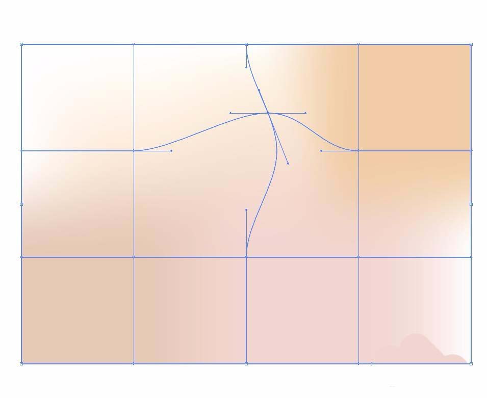 6、使用网格工具,点击增加网格的时候,按住 Shift 可使该网格点保持在网格线上。沿一条弯曲的网格线移动点而不使该网格线发生扭曲。如图,注意两张图的区别,都是颜色弯曲的网格上移动