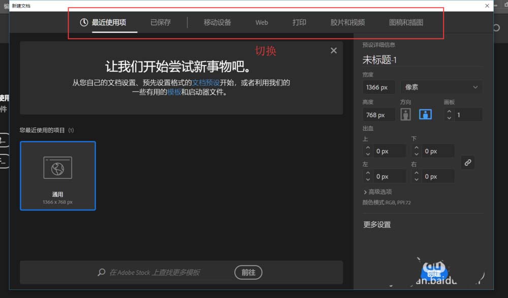 1、打开AI软件,首先我们要学习的是怎么新建一个画布,和新建画布时的一些参数设置