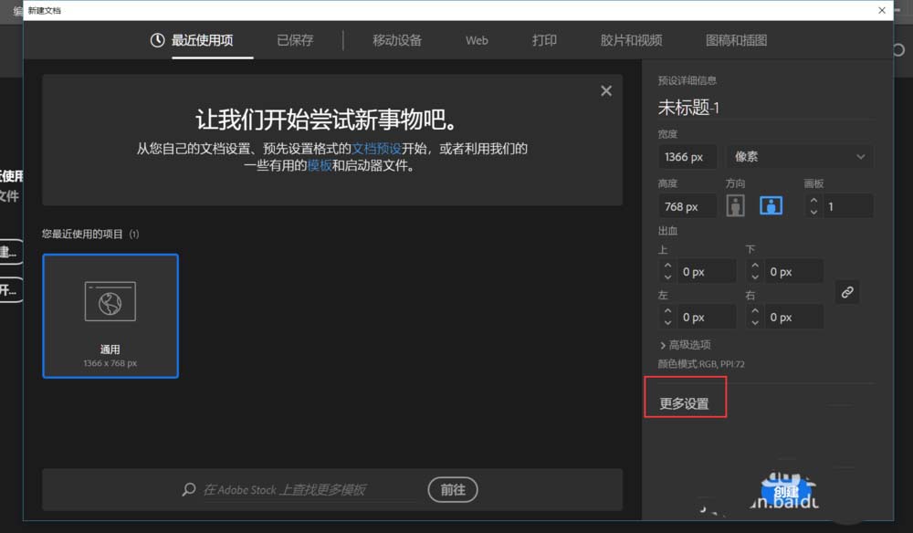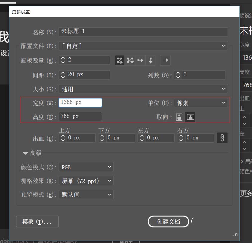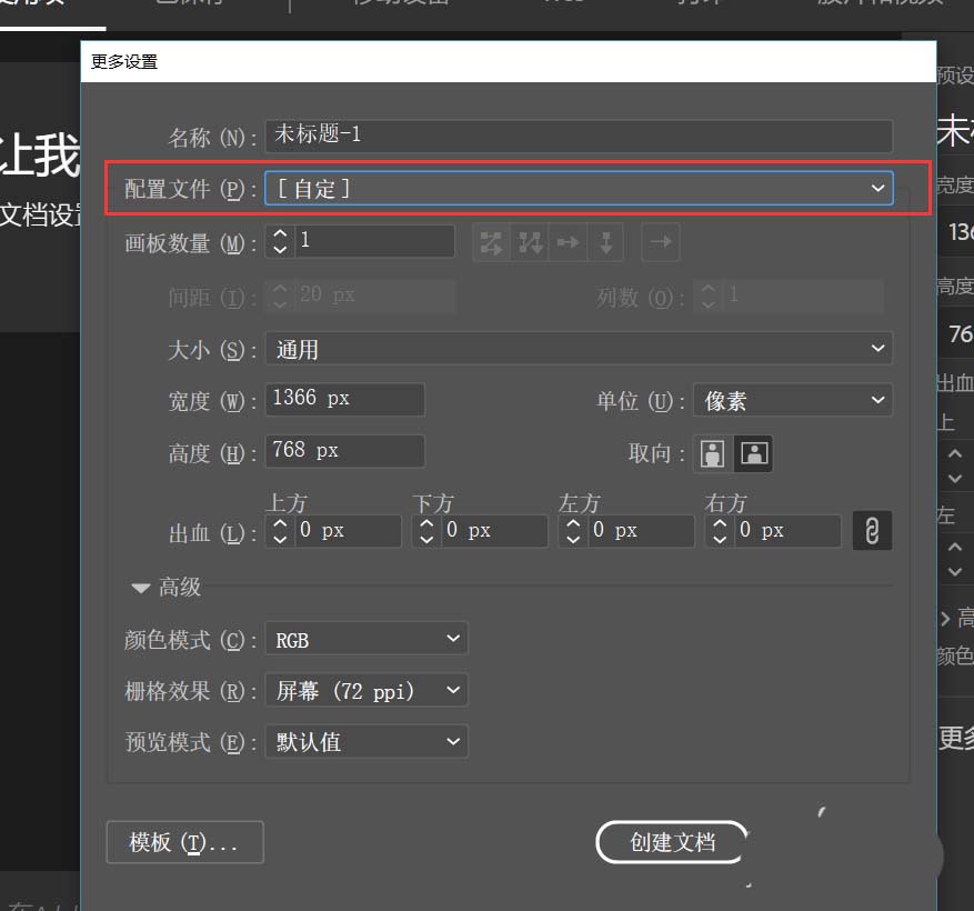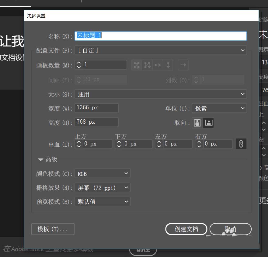 11、之后点击创建文档,我们就得到了一个画布