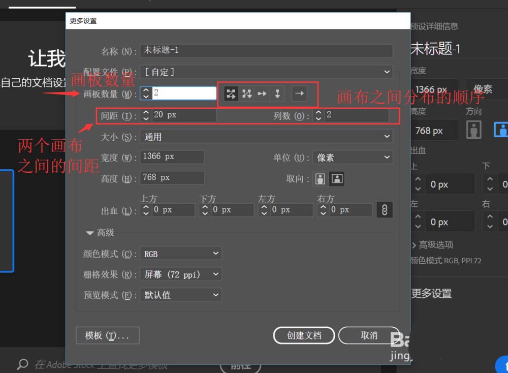 6、第三个是画布的数量,AI不同于ps,AI里可以建几个画布,如果我们选的是两个,