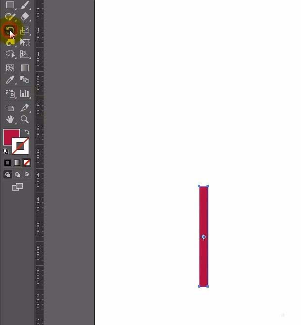 3、(现在给矩形做旋转,所以在这个矩形处于选择状态下)选择工具面板的旋转工具,如图显示