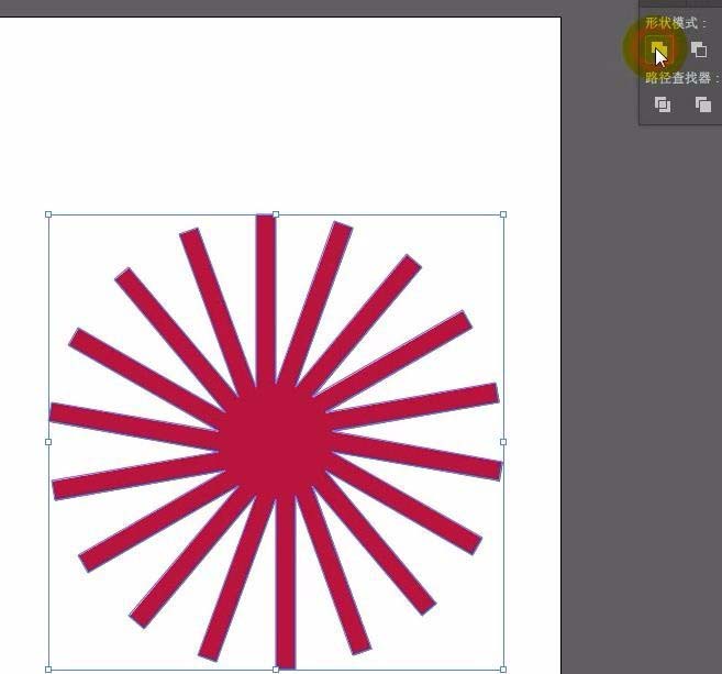 7、可以打开路径查找器面板,将刚才旋转出来的形状,在这里编辑操作,可做联级,交集,修剪等