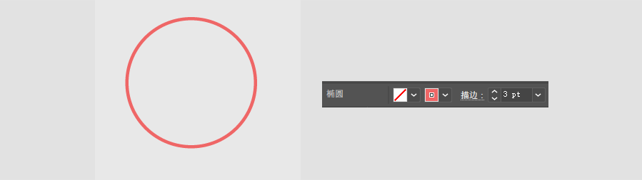 2.用椭圆工具绘制一个120X120px的正圆,由于是线性图标,所以我们关掉上面的填充,描边用3px,描边颜色填充为#ef6666,如图所示: