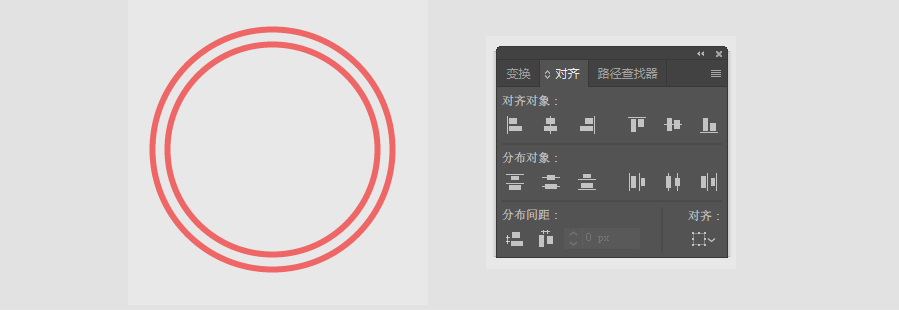 3.再复制一个,缩放至105x105px,描边为3px的正圆,因为我这里的数值是奇数,我用直接再绘制一个圆的方法,然后用对齐工具里的水平居中对齐和垂直居中对齐,如图所示: