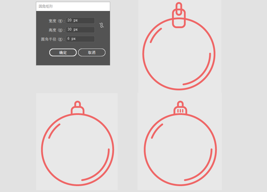 5.做圆头顶的图案,用圆角矩形工具绘制一个20x30px,圆角半径为6px的圆角矩形。