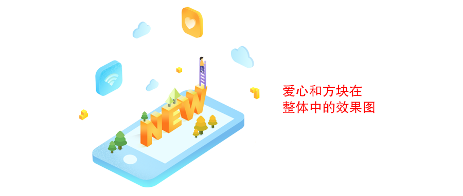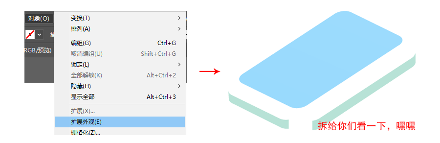 步骤3:剩下的悬浮在空中的小元素也以分解图的方式展现啦,记得扩展外观。