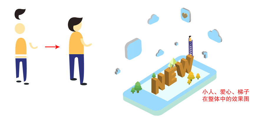 ⑤接下来就是小梯子、爱心、小人的分解图啦。