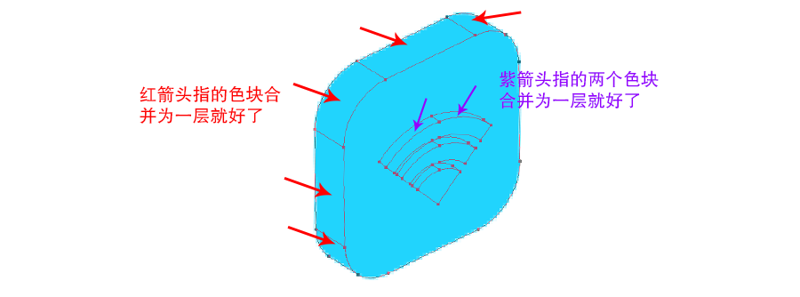 步骤2:接下来就可以给每一个小块上色了。那些圆滑的曲面有的会被分成几块,这时合并就好了。(具体见图)