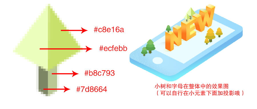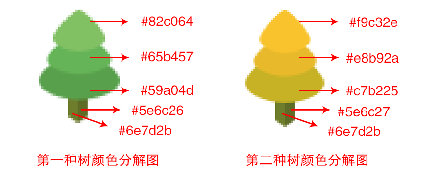 步骤5:接下来就是3种树的上色了,见下面分解图: