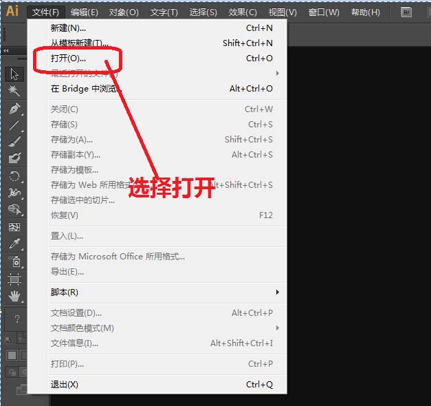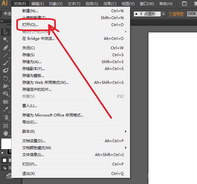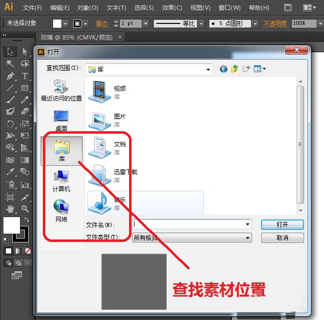 5、我们在画布上使用准备好的素材,AI文件功能选择打开查找素材。