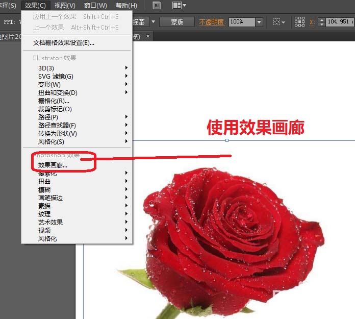 7、我们在AI软件工具栏,选择效果按钮,弹出下拉菜单,选择效果画廊。