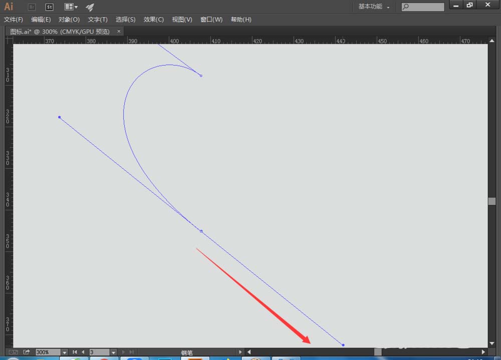 3、然后在这个锚点的正下方合适的位置,鼠标单击拖拽,画出心形的一半图形,如图所示: