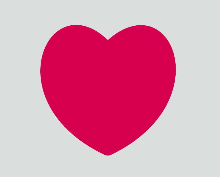 5、按住alt键,在上面绘制的第一个锚点的位置上,鼠标点击拖拽,对图形进行路径闭合,得到心形图形,如图所示: