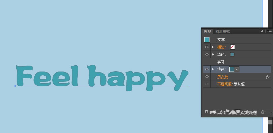 4、再次在外观面板中给文字添加一个颜色,比上一个颜色略深,然后把这个图层移动到第一个颜色图层的下边。