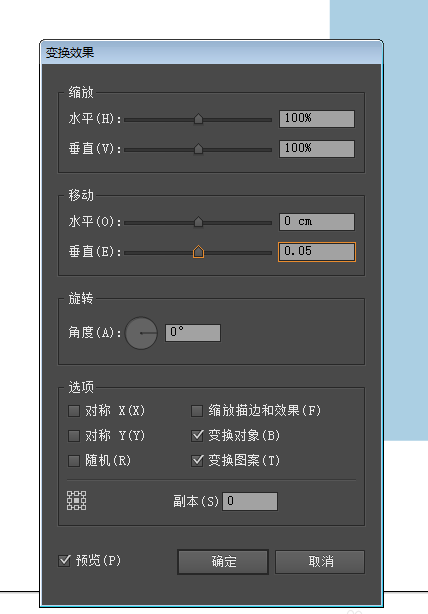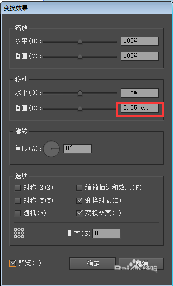 8、再次设置变换效果,垂直0.05厘米。