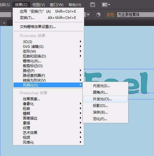 9、最后在效果菜单栏中中选择风格化-外发光。