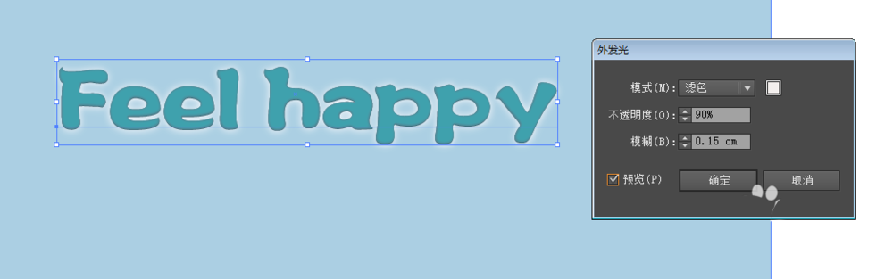 10、添加一个外发光的效果,模式选择滤色,不透明度90%,模糊0.15厘米,一个浮雕效果就做好了。